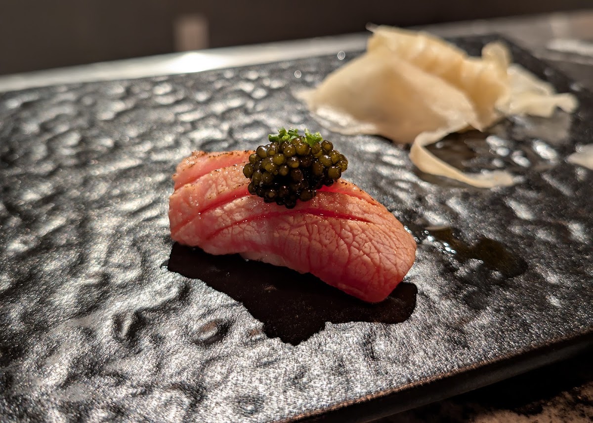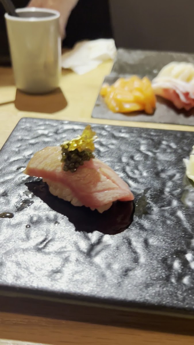 This spot is kind of hard to find because it’s on the opposite side of what Google maps says… the fish quality is quite good for the price. I did feel like it was a bit rushed and didn’t have time to enjoy each piece. I think it makes sense as they have parties coming in every hour. I would appreciate a longer dining experience. The standouts were the fatty tuna and salmon with truffle. Also enjoyed the shrimp with uni and scallop. I ordered the Wagyu foie gras add on which was torched and quite flavourful
