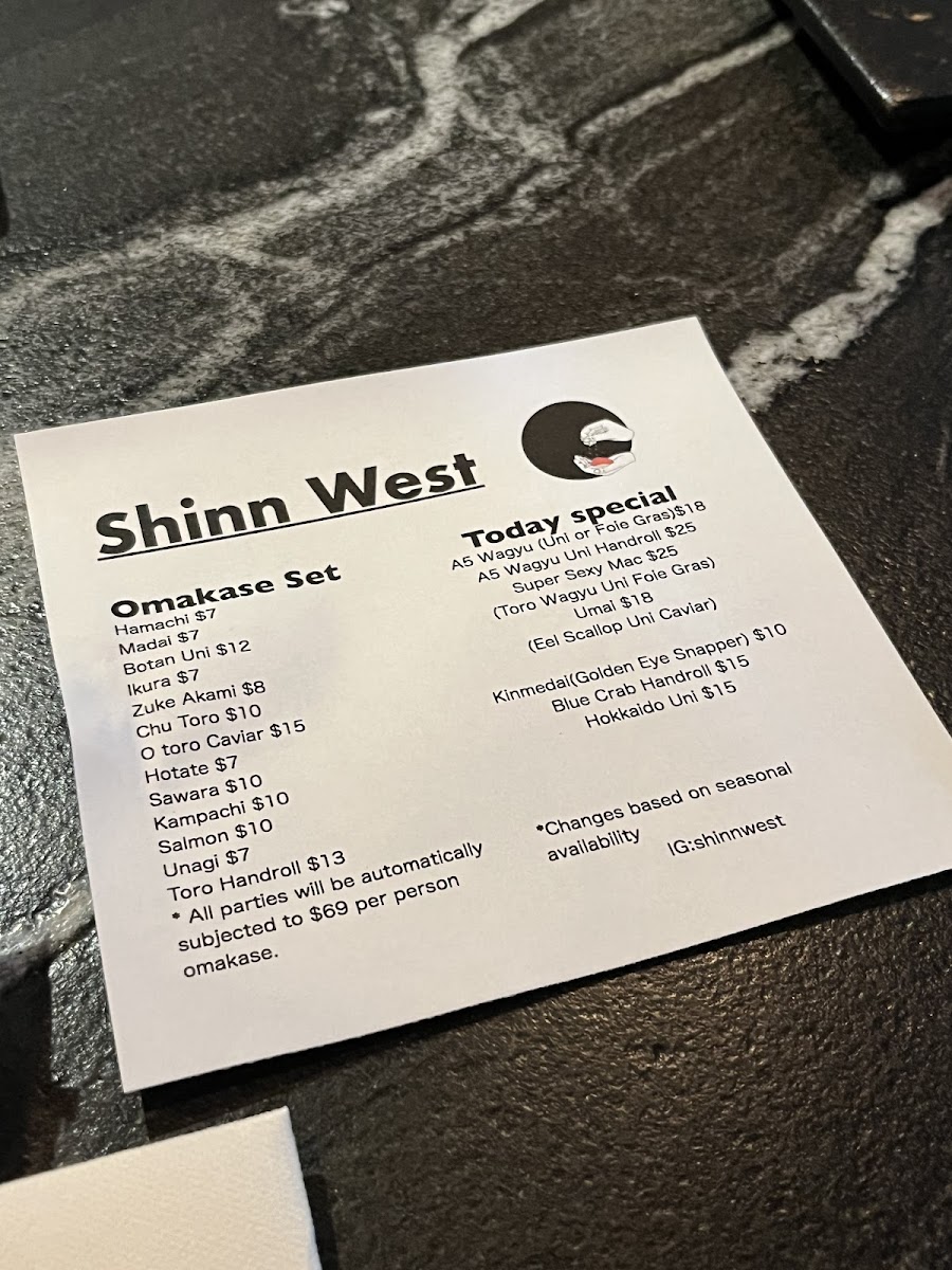 - Omakase service at Shinn WEST presents a sequence of fresh, thoughtful courses designed to highlight the chef’s skill and seasonal ingredients, suited for those seeking a more immersive dining experience.